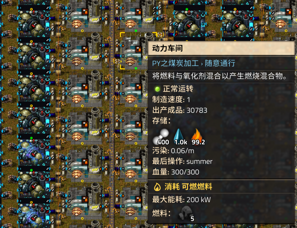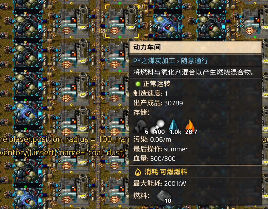 但是在发电厂新启动时、意外停机重新启动后、升级修改工厂建筑的过程中,有可能会出现焦炭先于煤粉抵达设施,导致焦炭被抓进燃料槽,煤粉无法进入的情况。此时比起手动调整每一个工厂,使用指令批量替换设施当前燃料会简单方便很多。